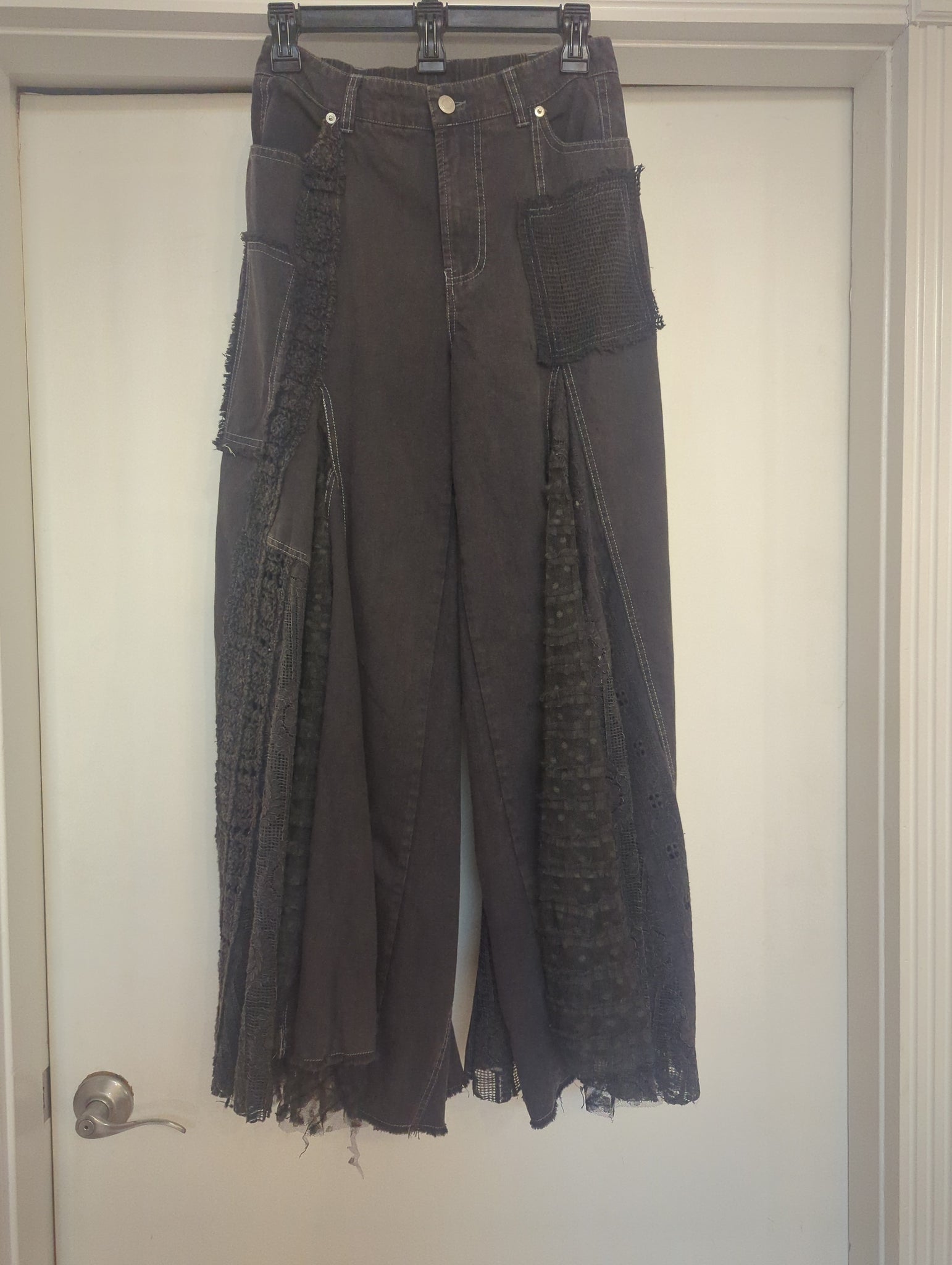 Elevate your everyday style with these charcoal ruffle pants that bring a fun twist to classic tailoring. Crafted from 100% cotton, they offer breathable comfort all day long. The eye-catching contrast ruffles add movement and personality to the wide-leg silhouette, making them perfect for dressing up or down. Whether you're heading to brunch or a casual night out, these pants deliver effortless sophistication with a playful edge.