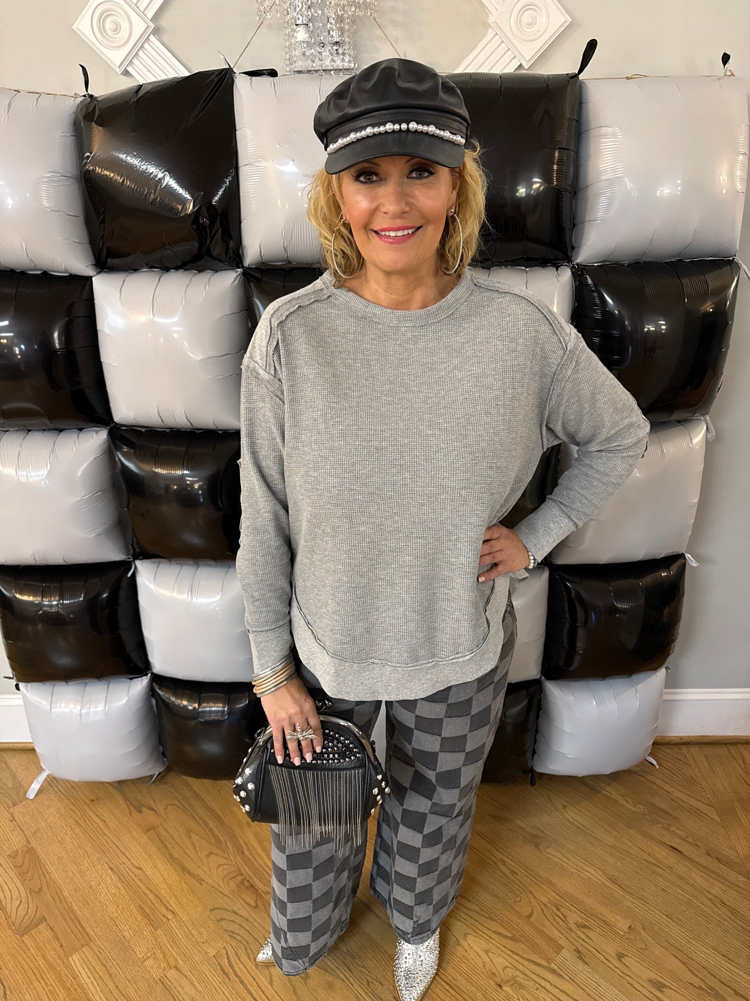 This oversized mineral-washed knit top features contrast elbow patches for a subtle yet distinctive style. Designed with long sleeves, a round neckline, and raw edge detailing, it offers a relaxed fit with a modern round hem. Its premium construction ensures durability while maintaining comfort, making it a versatile addition to any wardrobe.