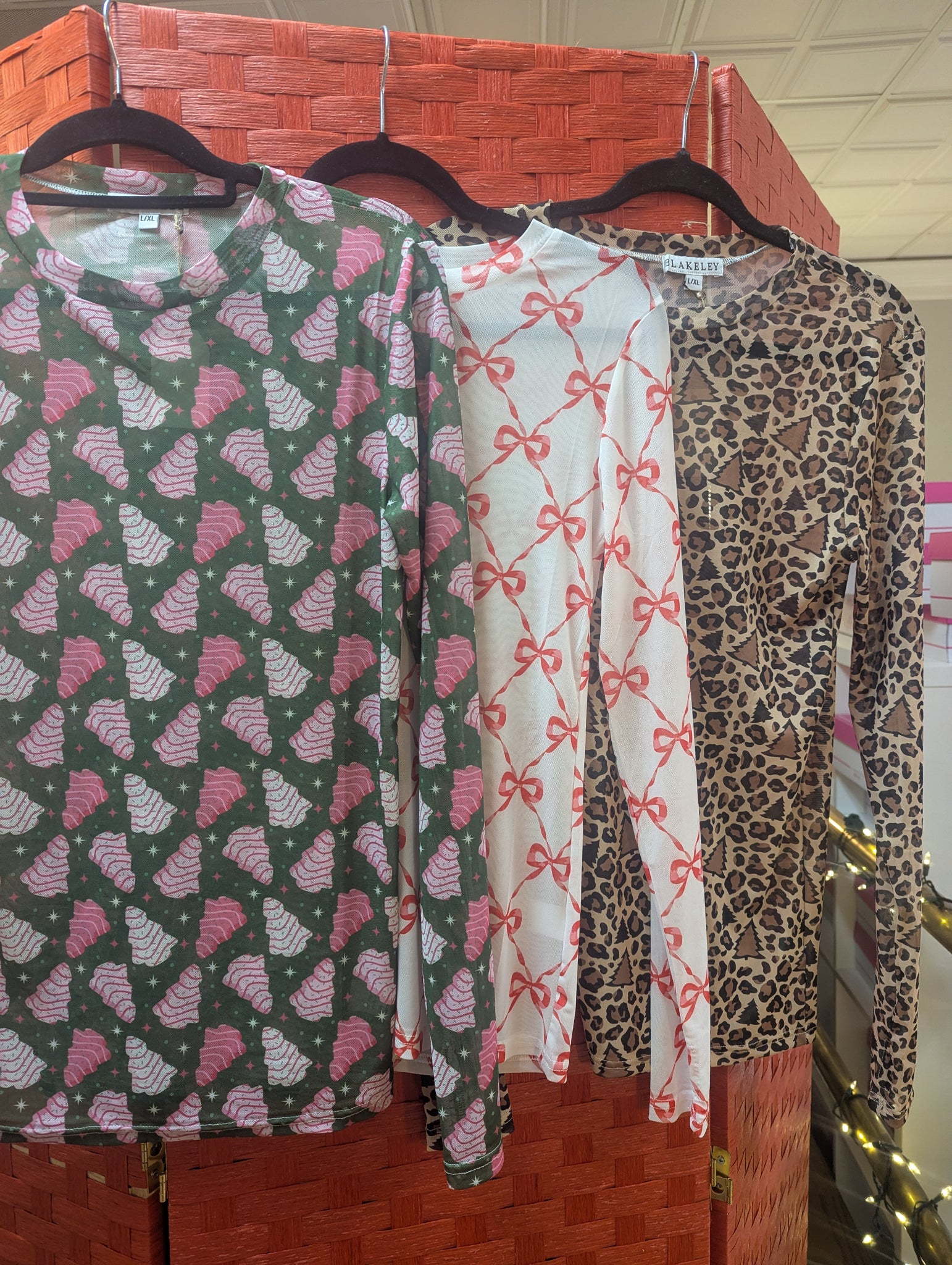 OUR HOLIDAY MESH PRINTS ARE HERE!! Super cute for layering, this sultry stretchy mesh print long-sleeve top, features a totally sheer design. Perfect worn alone or paired under your favorite cardigan, vest or sweater! Crew neck and thumbhole details.