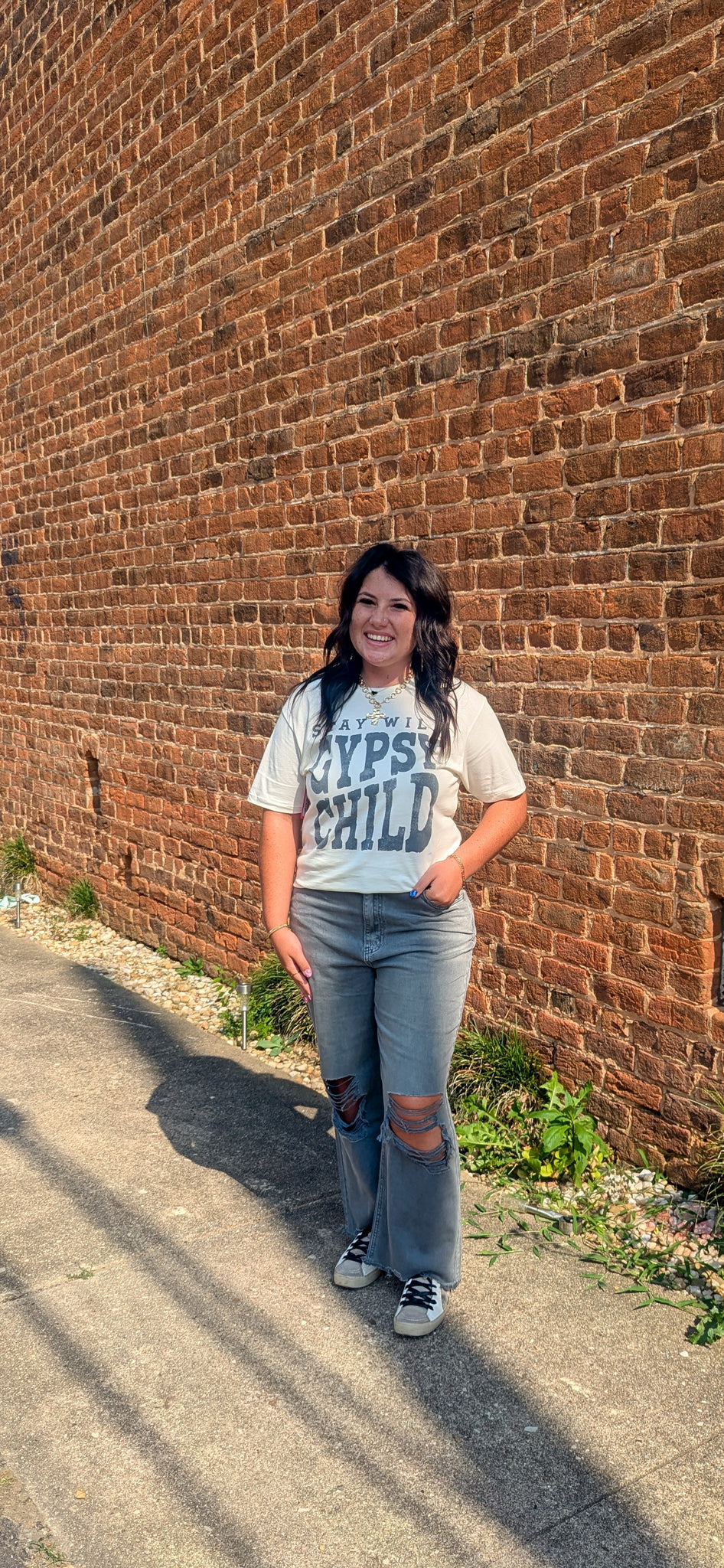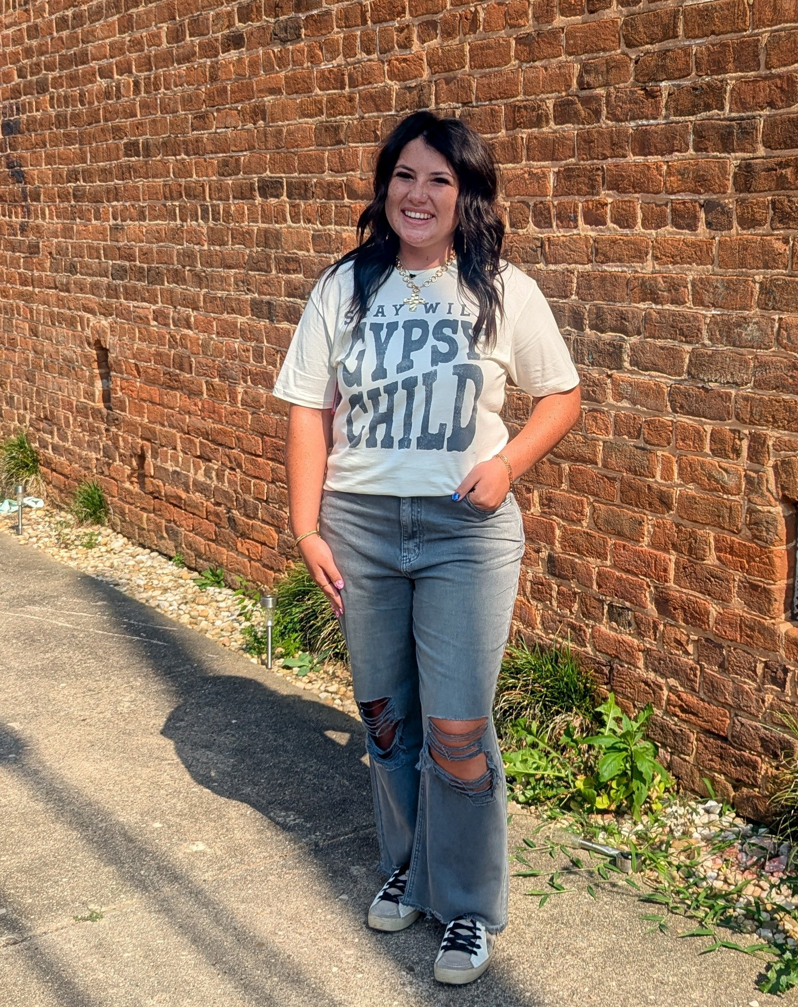 Celebrate your free spirit with the Stay Wild Ivory Gypsy Child Graphic Tee. Crafted for comfort and style, this tee inspires you to embrace your individuality and live boldly every day. Perfect for those who value self-expression and a carefree attitude.